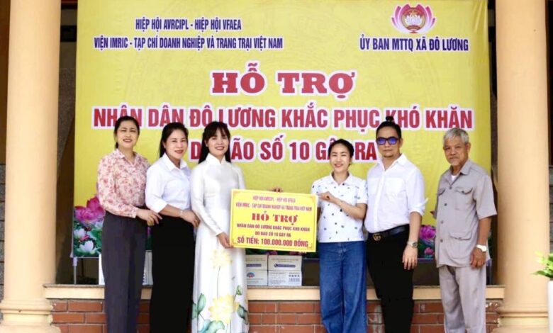Ngay từ khi mưa bão gây ngập lụt, Hiệp hội AVRCIPL; Hiệp hội VCCDA; Viện IMRIC; Viện IRLIE đã huy động cán bộ, hội viên, doanh nghiệp thành viên đã tích cực kêu gọi ủng hộ bà con bị ảnh hưởng bão lũ, Với tinh thần “nhường cơm sẻ áo”, Tình người còn được lan tỏa mạnh mẽ từ các phường lân cận. Các tổ chức chính trị – xã hội đã trực tiếp đến UBND xã Đô Lương, tỉnh Nghệ An để trao tặng hỗ trợ bà con 100.000.000VND.