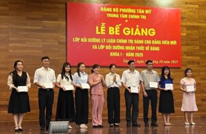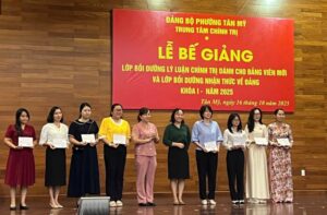 Phát biểu tại buổi lễ, đại diện lãnh đạo Trung tâm Chính trị phường Tân Mỹ ghi nhận, đánh giá cao sự nỗ lực của Ban Tổ chức, đội ngũ giảng viên và tinh thần nghiêm túc, trách nhiệm của các học viên trong suốt quá trình học tập. Đồng chí nhấn mạnh, kết quả đạt được của khóa học không chỉ là minh chứng cho sự quan tâm, chỉ đạo sát sao của Đảng ủy các cấp mà còn thể hiện tinh thần phấn đấu, rèn luyện, ý chí kiên định của mỗi học viên trên con đường trở thành đảng viên Đảng Cộng sản Việt Nam.