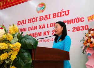 Đ/c Dương Thị Mỹ Châu – Bí thư Đảng ủy, Chủ tịch HĐND xã Long Phước phát biểu chỉ đạo Đại hội