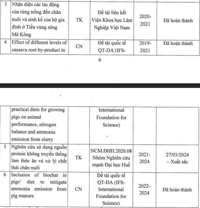 Một số đề tài nghiên cứu khoa học của Tiến sĩ Nguyễn Hải Quân. Ảnh chụp màn hình.