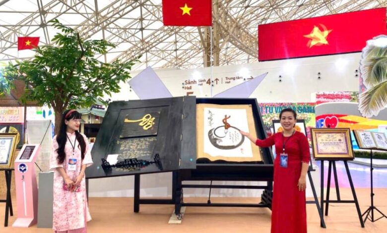 Quyển sách thư pháp “Nguyễn Đình Chiểu thi tuyển” trưng bày tại Nhà triển lãm Kim Quy