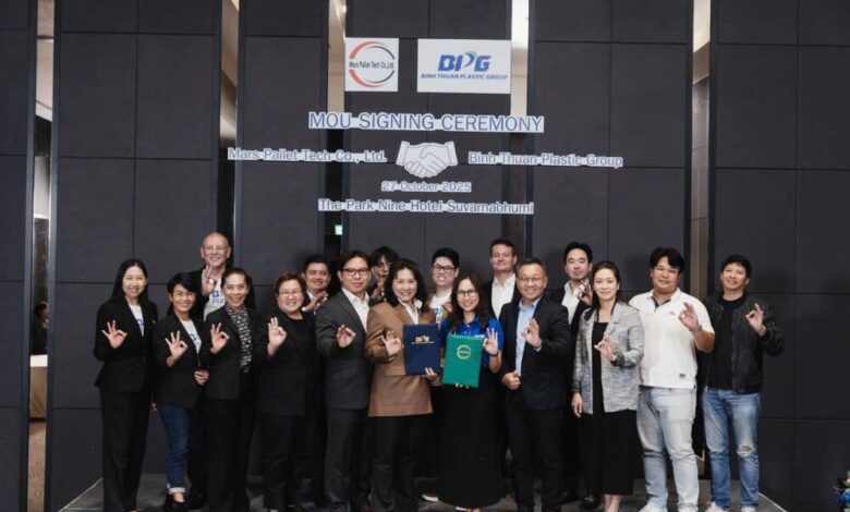 (HNTTO) – Ngày 27/10/2025 mới đây, tại Khách sạn The Park Nine Suvarnabhumi (Thái Lan), Tập đoàn Nhựa Bình Thuận (BPG) và Mars Pallet Tech Co., Ltd (MARS) đã chính thức ký Biên bản Ghi nhớ (MOU) thành lập liên doanh BPG Mars Global Plastic (BMG) – đánh dấu bước tiến quan trọng trong việc phát triển giải pháp pallet và logistics toàn diện trên quy mô quốc tế.