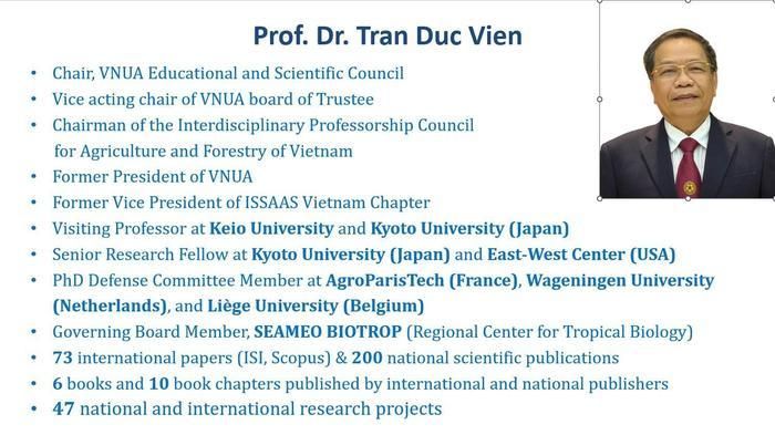 Thầy Trần Đức Viên – nguyên là Hiệu trưởng Trường Đại học Nông nghiệp I, Giám đốc Học viện Nông nghiệp Việt Nam, Chủtịch Hội đồng Học viện Nông nghiệp Việt Nam; thành viên Ban quản lý của Trung tâm Sinh học Nhiệt đới Đông Nam Á (Seameo Biotrop), Phó Chủ tịch Hiệp hội ISSAAS, giáo sư thỉnh giảng Đại học Kyoto, Đại học Keio (Nhật Bản); nghiên cứu viên cao cấp (Senior Research Fellow) Đại học Kyoto, Trung tâm Nghiên cứu Đông-Tây (East-West Center), Hoa Kỳ; thành viên hội đồng bảo vệ luận án tiến sĩ của Viện công nghệ Nông nghiệp Paris (AgroParisTech), Đại học Waginingen (Hà Lan), Đại học Liege (Vương quốc Bỉ).
