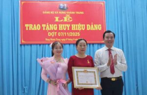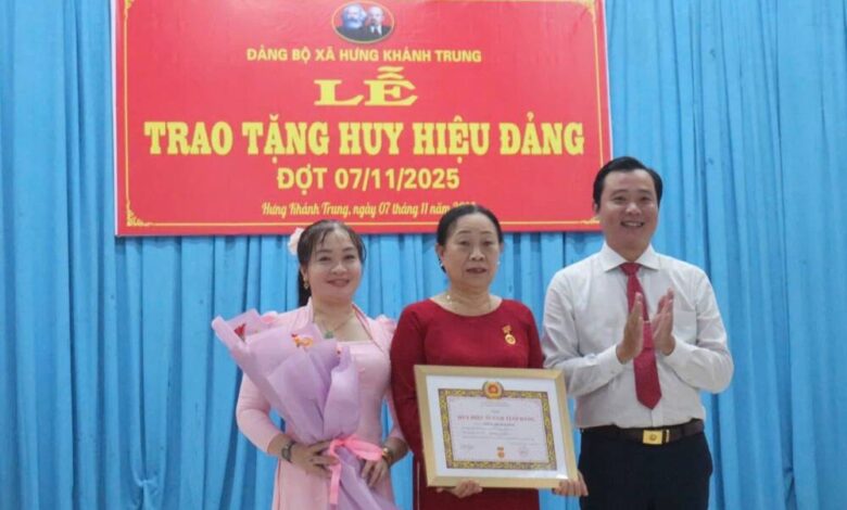 (HNTTO) – Mới đây, trong không khí phấn khởi hướng về kỷ niệm 108 năm Cách mạng Tháng Mười Nga (07/11/1917 – 07/11/2025), vào sáng ngày 07/11/2025 – Đảng bộ xã Hưng Khánh Trung đã long trọng tổ chức Lễ trao Huy hiệu Đảng đợt 07/11/2025 cho 10 đảng viên đủ niên hạn.