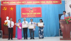 Cùng ngày, Đảng bộ xã đã trao Huy hiệu Đảng tại nhà cho đồng chí Nguyễn Năm Nương – đảng viên Chi bộ ấp Gia Khánh, với Huy hiệu 60 năm tuổi Đảng.
