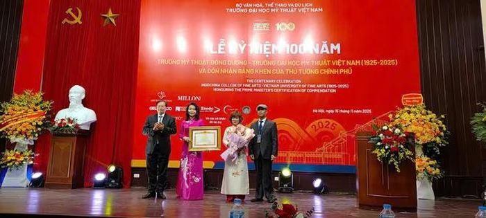 Trường Đại học Mỹ thuật Việt Nam vinh dự đón nhận Bằng khen của Chính phủ vào dịp kỷ niệm 100 thành lập.