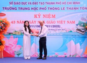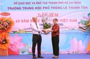 (HNTTO) – Trong không khí rộn ràng của tháng tri ân, sáng 20/11, Trường THPT Lê Thánh Tôn đã long trọng tổ chức Lễ Kỷ niệm Ngày Nhà giáo Việt Nam 20/11 và hướng đến cột mốc 50 năm xây dựng – phát triển nền giáo dục Thành phố Hồ Chí Minh (1975–2025). Buổi lễ diễn ra trong không gian trang trọng, đầm ấm và đầy xúc cảm, quy tụ nhiều thế hệ cán bộ, giáo viên, nhân viên, cựu học sinh, phụ huynh cùng các mạnh thường quân đồng hành với nhà trường trong suốt thời gian qua.