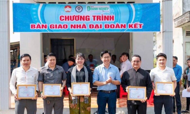 Cụ thể, sáng ngày 29/12/2025 tại UBND xã hộ ông Nguyễn Văn Thắng trú ấp Hoà B, xã Hoà Hưng, tỉnh An Giang, đoàn công tác của Hiệp hội AVRCIPL, Tạp chí Doanh nghiệp và Trang trại Việt Nam do ông Trần Tuấn Hải – Phó Chủ tịch thường trực Hiệp hội, ông Hồ Minh Sơn – Phó Chủ tịch – Tổng Thư ký Hiệp hội AVRCIPL; viện trưởng Viện IMRIC; ThS. Hồ Thị Thanh Tuyền – Viện trưởng Viện IRLIE; ông Hồ Phú Quốc Cương – Phó Tổng thư ký Hiệp hội AVRCIPL – Trưởng Ban biên tập Tạp chí Doanh nghiệp và Trang trại Việt Nam, ông Nguyễn Hữu Phước – Trưởng ban kiểm tra Hiệp hội AVRCIPL, ông Trương Ngọc Hải – UV Ban kiểm tra Hiệp hội VFAEA- Trưởng phòng phóng viên Tạp chí Doanh nghiệp và Trang trại Việt Nam và cán bộ, phóng viên Tạp chí Doanh nghiệp và Trang trại Việt Nam đã dự lễ trao tặng nhà Đại Đoàn kết, chương trình được phát động trong Chương trình “Báo chí và Doanh nhan” năm 2025 cho hộ ông Nguyễn Văn Thắng tỉnh An Giang. Đồng hành cùng chương trình có sự tham dự của quý đơn vị tài trợ có bà Hồ Thị Thanh Hương – Chủ tịch HĐQT – Tổng Giám đốc Công ty CP Du lịch Đầu tư BĐS Đồng Đội Phú Quốc(đơn vị tài trợ kinh phí mua nền gia cư), đại diện tập đoàn Calgary(đơn vị tài trợ kinh phí xây dựng), đại diện các đơn vị đồng tài trợ.
