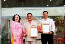 Ông Hồ Minh Sơn thứ hai bên phải, nhận bằng khen Chủ tịch Hiệp hội Phát triển văn hoá cộng đồng Việt Nam
