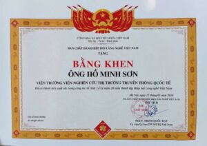 (HNTTO) – Ông Hồ Minh Sơn – Phó Chủ tịch Hiệp hội Làng nghề Việt Nam (VICRAFTS) phía Nam, Viện trưởng Viện Nghiên cứu Thị trường – Truyền thông Quốc tế (IMRIC) đã vinh dự lần thứ hai nhận bằng khen của Chủ tịch Hiệp hội Làng nghề Việt Nam vì đã có thành tích xuất sắc trong công tác tổ chức Lễ kỷ niệm 20 năm thành lập Hiệp hội. Đây là sự ghi nhận động viên kịp thời, trân quý đối với những nỗ lực không ngừng nghỉ của ông Hồ Minh Sơn.