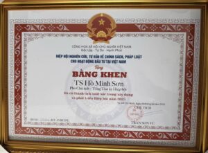 Ông Hồ Minh Sơn vinh dự nhận bằng khen của Chủ tịch Hiệp hội Nghiên cứu, Tư vấn về Chính sách, pháp luật cho hoạt động đầu tư tại Việt Nam
