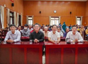 Nhà báo Hồ Phú Quốc Cương – Phó Tổng Thư ký, trưởng ban Ban Truyền thông Hiệp hội cùng Nhà báo Trương Ngọc Hải trao qùa cho người dân